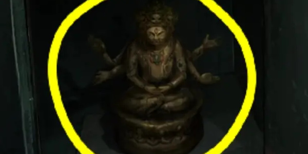 16.在探望室中点击右侧玻璃,随后点击木偶的眼睛,再将密码锁解开,顺序为逆时针75,顺时针20,逆时针60,可打开获取金像。