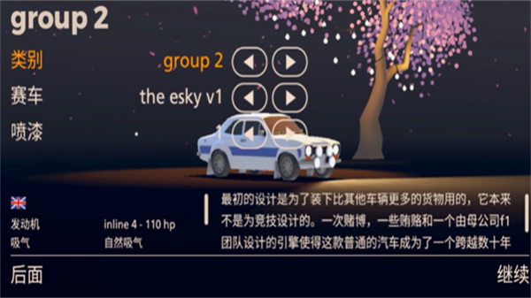 3.类型数量丰富的各种不同类型的拉力赛车供玩家驾驶体验,自由选择驾驶不同类型拉力赛车。