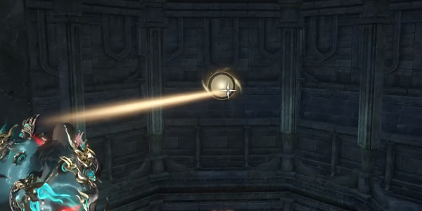 3.在下方对准两测倒挂的佛像也使用【流光】 ,随后中间倒挂的佛像就会移动,打开密室并前往。