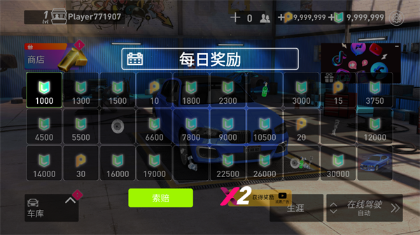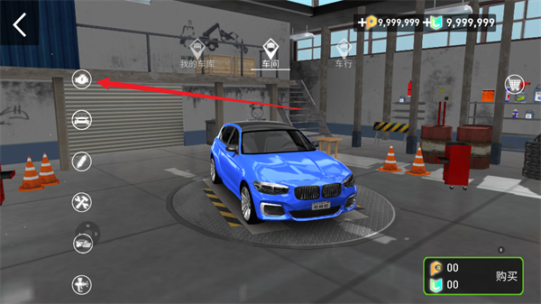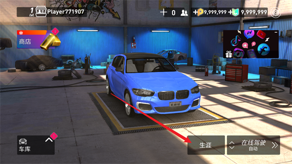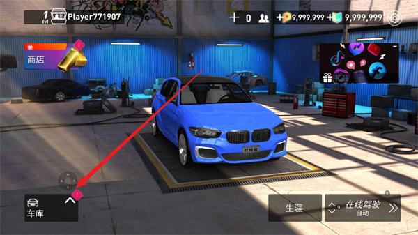 3、然后点击左下角的车库对自己的赛车进行调整。