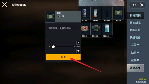 4、左侧会出现一个弹窗对物品的基础介绍以及价格进行描述,拖动下方的进度条选择数量,并点击购买。
