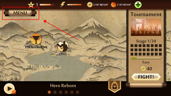 1、首先在本站下载安装并打开暗影格斗2游戏,点击左上角的菜单按钮;
