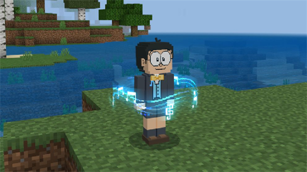 标志性蓝脑袋,圆嘟嘟的他伸出一双灵活的小圆手,是他,有着四维口袋的哆啦A梦,,这次他将带领大雄和他的新伙伴们一起踏入方块世界!