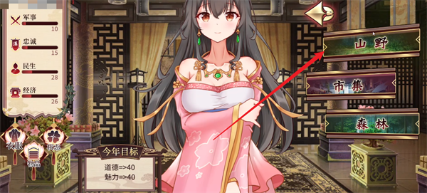 3、选择山野并进行出游之后,将会进入到相应的剧情当中。