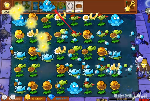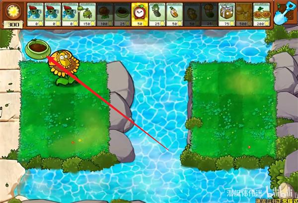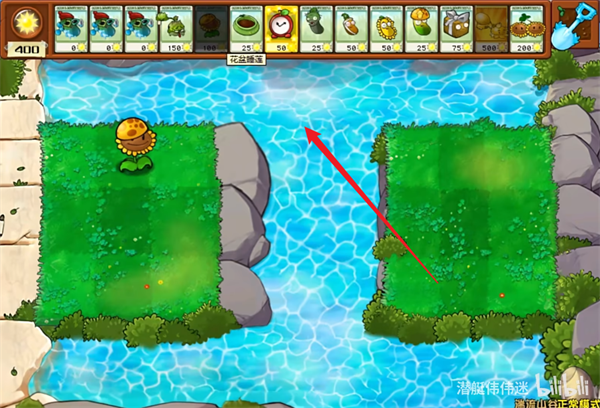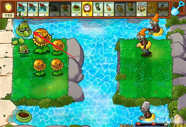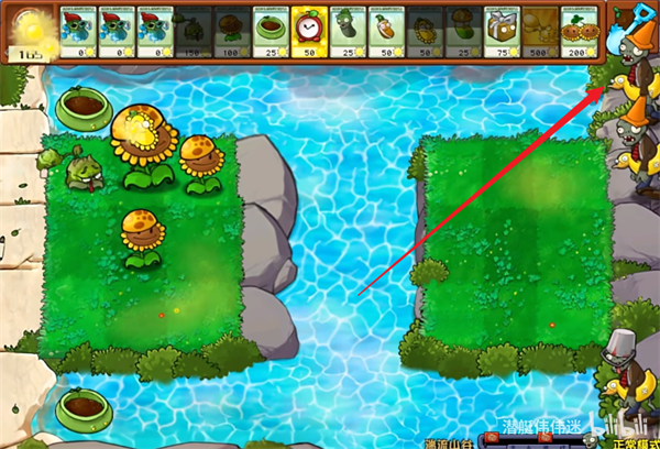 1、在泳池模式的关卡之中,场景上面将会存在着水面的格子。