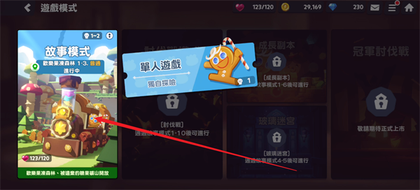 3、进入故事模式之后,点击当前的关卡进行进行攻略。