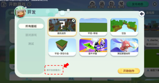 2、玩家们可以在打开开发模式之后,点击下方的原开发模式进入到高级创造当中。