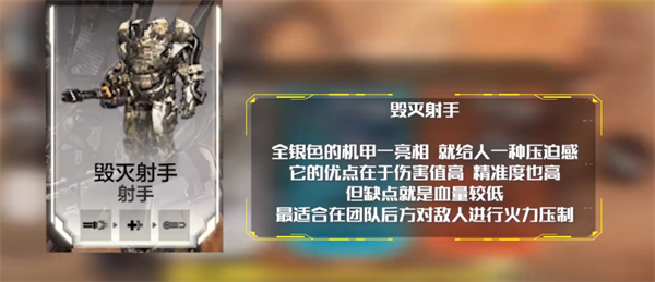主要负责火力压制,升级后可以强化机枪火力和精准度,拥有变形盾技能,伤害高、血量高,最高等级可以双持机枪。
