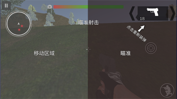 3、在游戏中可以使用左侧的摇杆或方向键来控制人物的移动,而右侧的界面则提供了瞄准和装弹的功能。