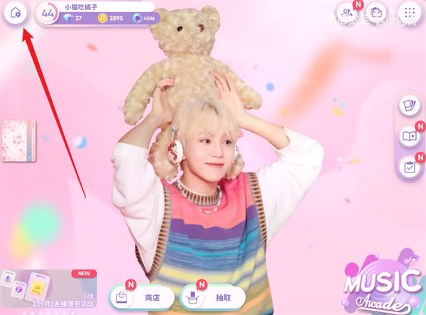 1、玩家们进入游戏之后,首先需要点击左上角的齿轮设置图标。