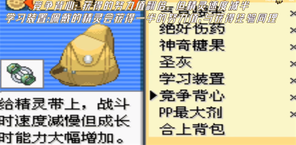 竞争背心努力值翻倍,但佩戴时精灵速度减慢。