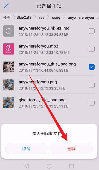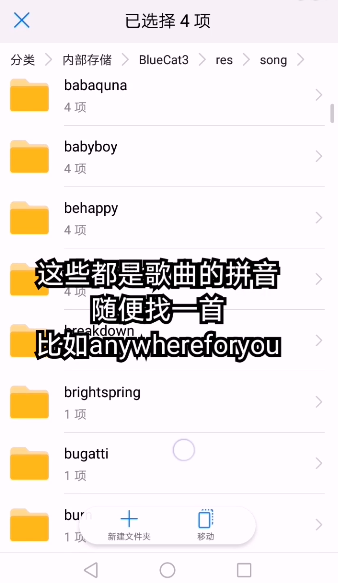 6、前往Blue/res/song,并在其中随便选中一个歌曲。