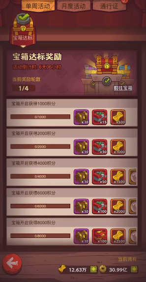 咸鱼之王每周都会推出一些活动任务,现在是宝箱周和招募周轮流开放,玩家们只需要在黑市那里购买宝箱然后攒下来,就能够顺利的完成周活动的指标。