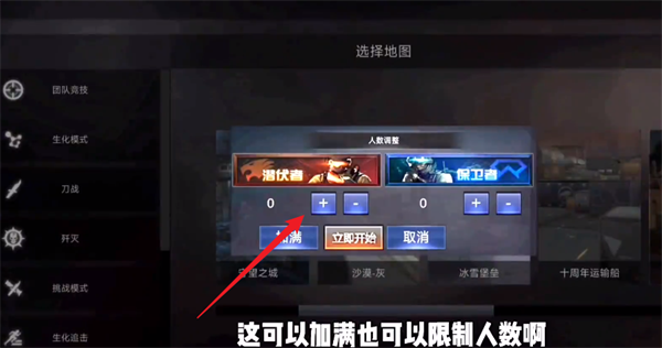 2、选择地图完成之后,你就能够对地图里面的人数进行调整。