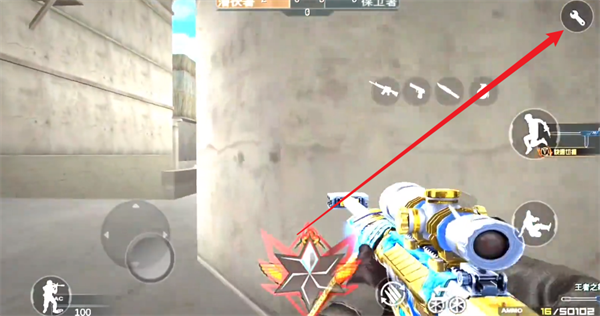 3、进入战斗地图之后,点击右上角的扳手图标。