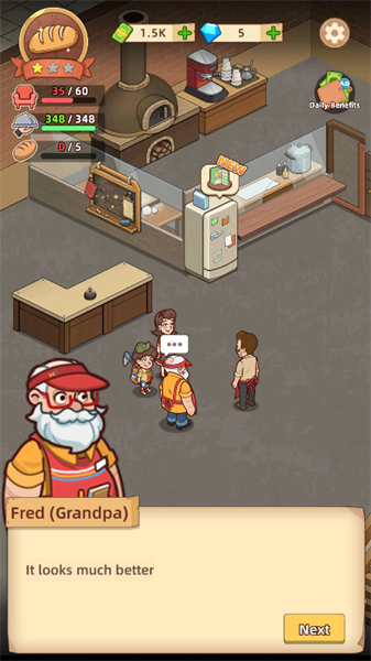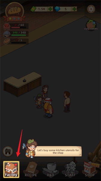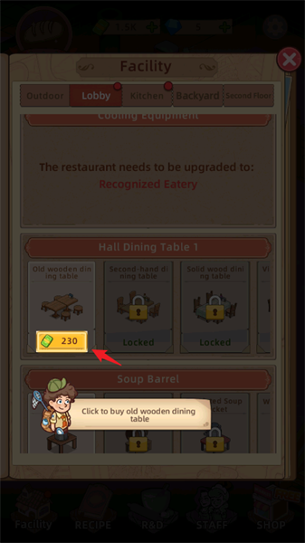 1、玩家们可以消耗物资对店铺进行装修设计和设备的升级,以此来吸引到更多的顾客。