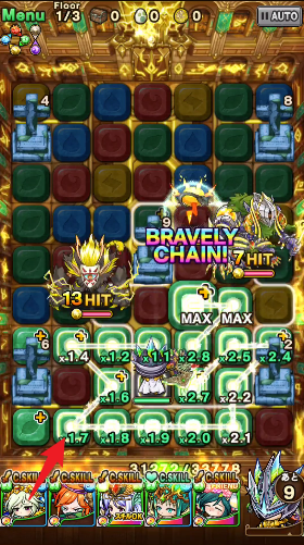 5、当轮到玩家们进行攻击之后,你需要对场景之中的同色方块进行连线,连的越多伤害也越高。