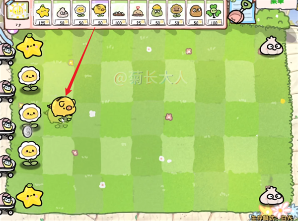 2、消耗50阳光就可以将金猪存钱草种植在场景的格子上面。