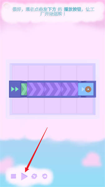 4、完成链接之后,就要点击左下角的播放按钮,让工厂进行运转。