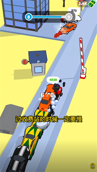 达到收费站时速度要慢,需要缴纳一定的过路费。