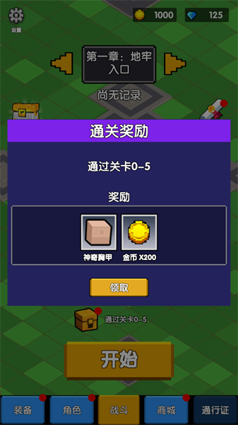 完成通关后,可以在主界面开始的上方点击宝箱领取通关奖励。