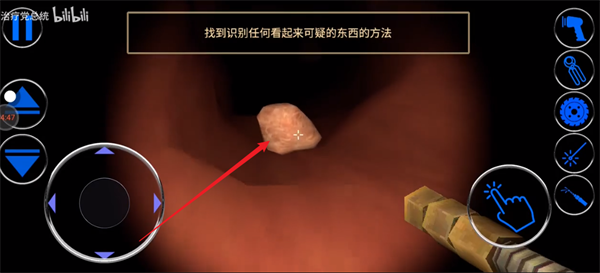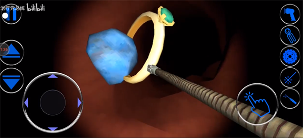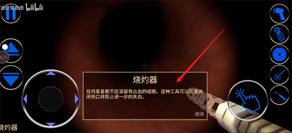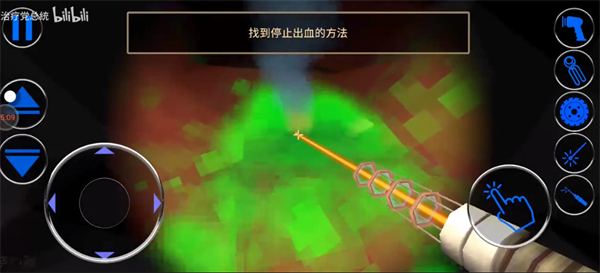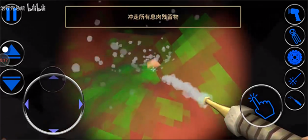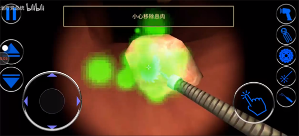3、你需要通过左下角的轮盘操控医疗器械在大肠里面进行运动,并找到可疑的东西。