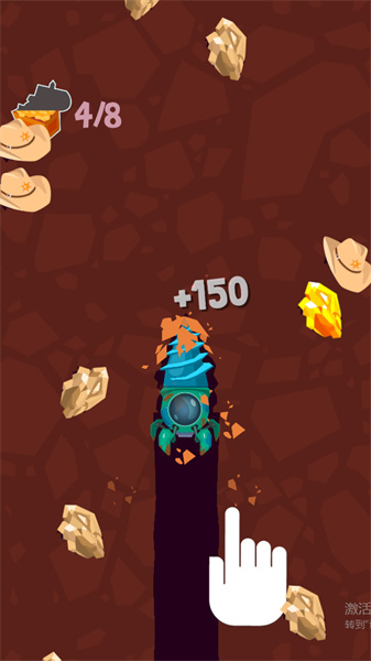 进入到游戏场景后,我们需要获得屏幕控制钻头,根据左侧的要求进行收集物品。