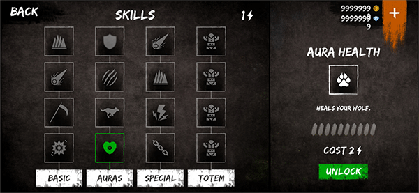 5、玩家可以使用金币提升狼的攻击、血量等属性;