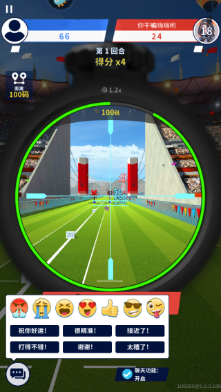 6、根据距离选择对应的码数松手进行射击,点击下方的言语可以发送图案或是短句