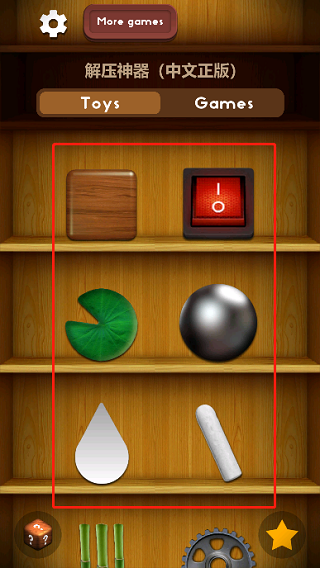 2、进入游戏后玩家们可以看到有一个“书架”,在这上面放置着很多东西,每一个都是解压小游戏。