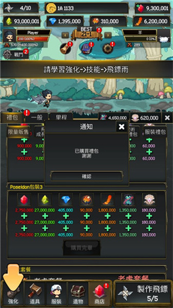 6、通过购买不同的礼包,玩家们就可以拥有海量的资源,获得大幅度的战斗能力提升。