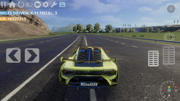 2、进入到游戏后,我们可以看到左边的按键可以控制车辆进行左右移动,右边的按键控制车辆前进和刹车。