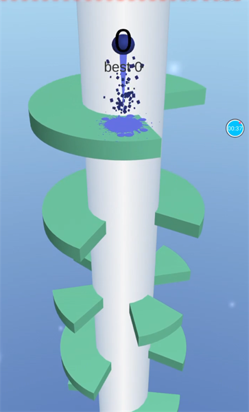 2、通过滑动屏幕来移动塔中间的圆环,以此来让小球可以往下落,并由此来获取到相应的分数。