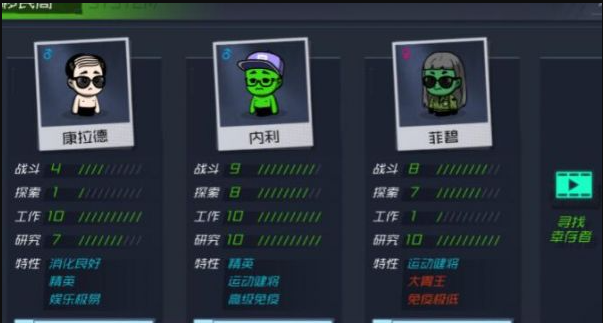 在荒野上寻找资源的时候也是能够找到幸存者的,这些幸存者大多都有一些专业的技能。
