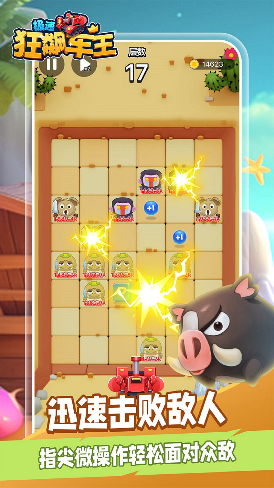 极速狂飙车王是一款结合了休闲射击与Roguelike元素的养成类小游戏,可以通过简单的单手操作,享受轻松解压的游戏体验。游戏中提供了丰富多样的技能加成和刺激的活动,能够自由组合和养成自己喜欢的技能套装。游戏还拥有多种风格各异的战车和坦克角色,等待去收集和体验。