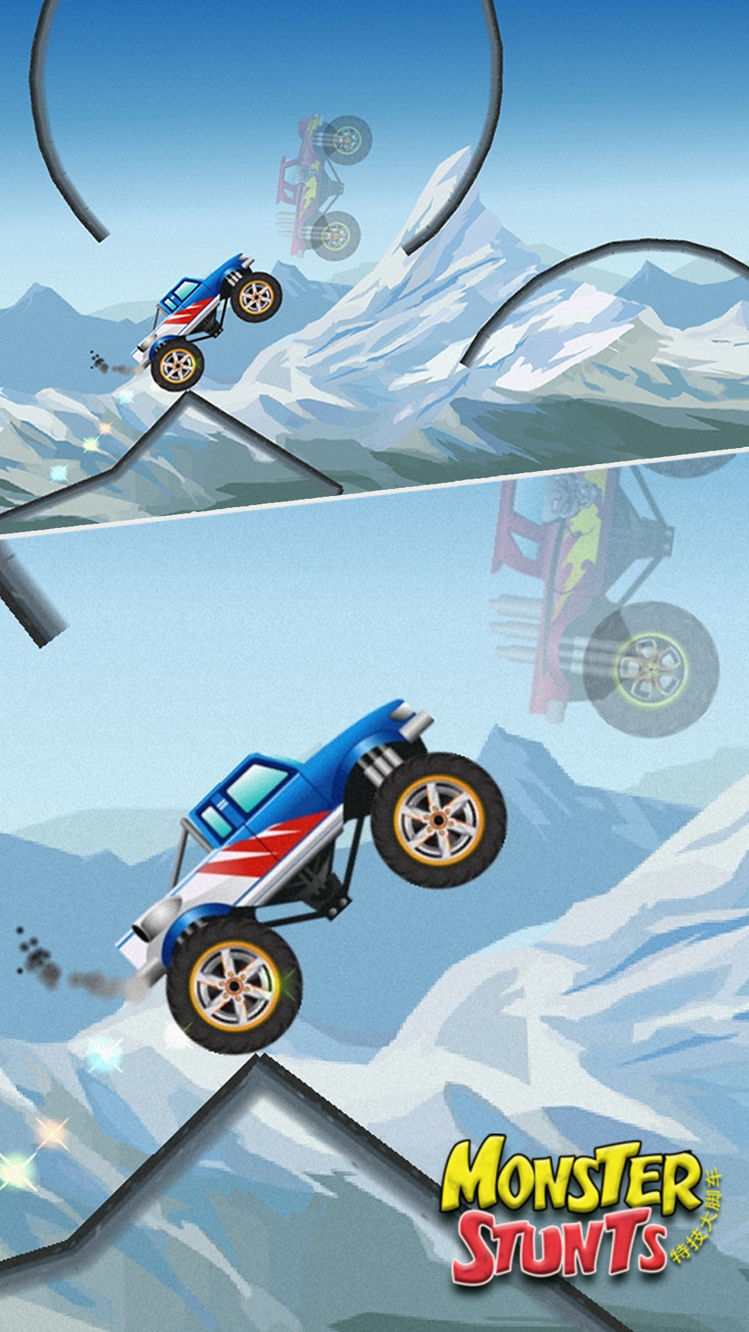 特技大脚车app是一款充满激情的美式大脚车特技竞速游戏,需要在精心设计的赛道上驾驶大脚车,尽快到达终点。尽管操作方式简单,但要想获得高分却需要一定的技巧。通过在空中进行360度旋转,获得额外的奖励和金币,需要注意避免碰撞,频繁的碰撞会损坏车辆,影响游戏体验。