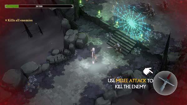 1、进入灵魂猎手地牢官方版游戏后,左手控制角色移动
