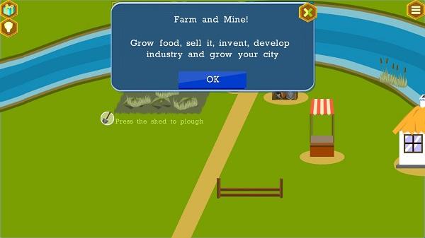 1、进入游戏后,提示以给出。大概的意思就是说种植粮食,然后卖出,发明、发展工业,发展城市。