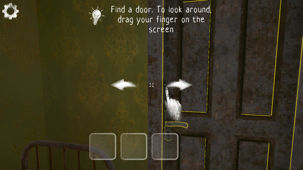 5、进入游戏,根据提示“找一扇门,看看周围,把你的手指拖到屏幕上”