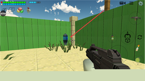 3、游戏内通过左侧虚拟按键控制角色移动,右侧按键可执行射击、切换武器等操作,还能使用手雷类道具,界面顶部会显示角色的血量等状态信息。
