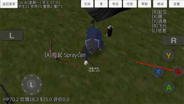 3、移动角色靠近物品,点击对应按钮捡起场景中的Spraycan物品。