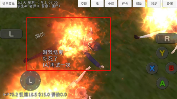2、在校园场景中通过界面按钮与其他角色进行交谈互动,查看对话内容。