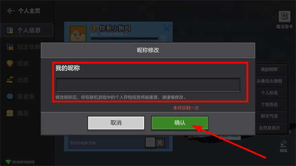 我的世界怎么修改昵称