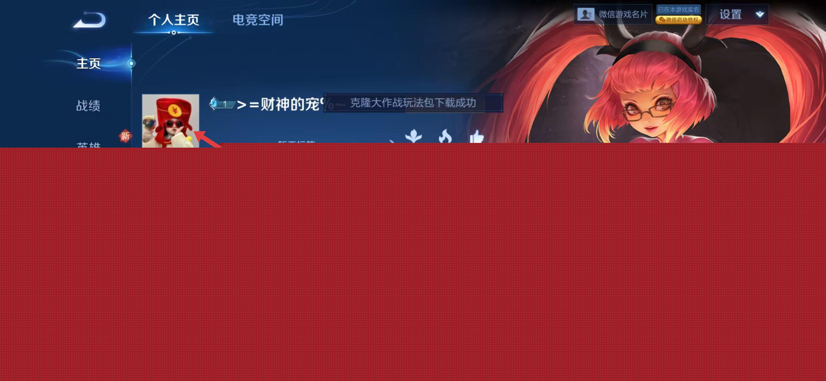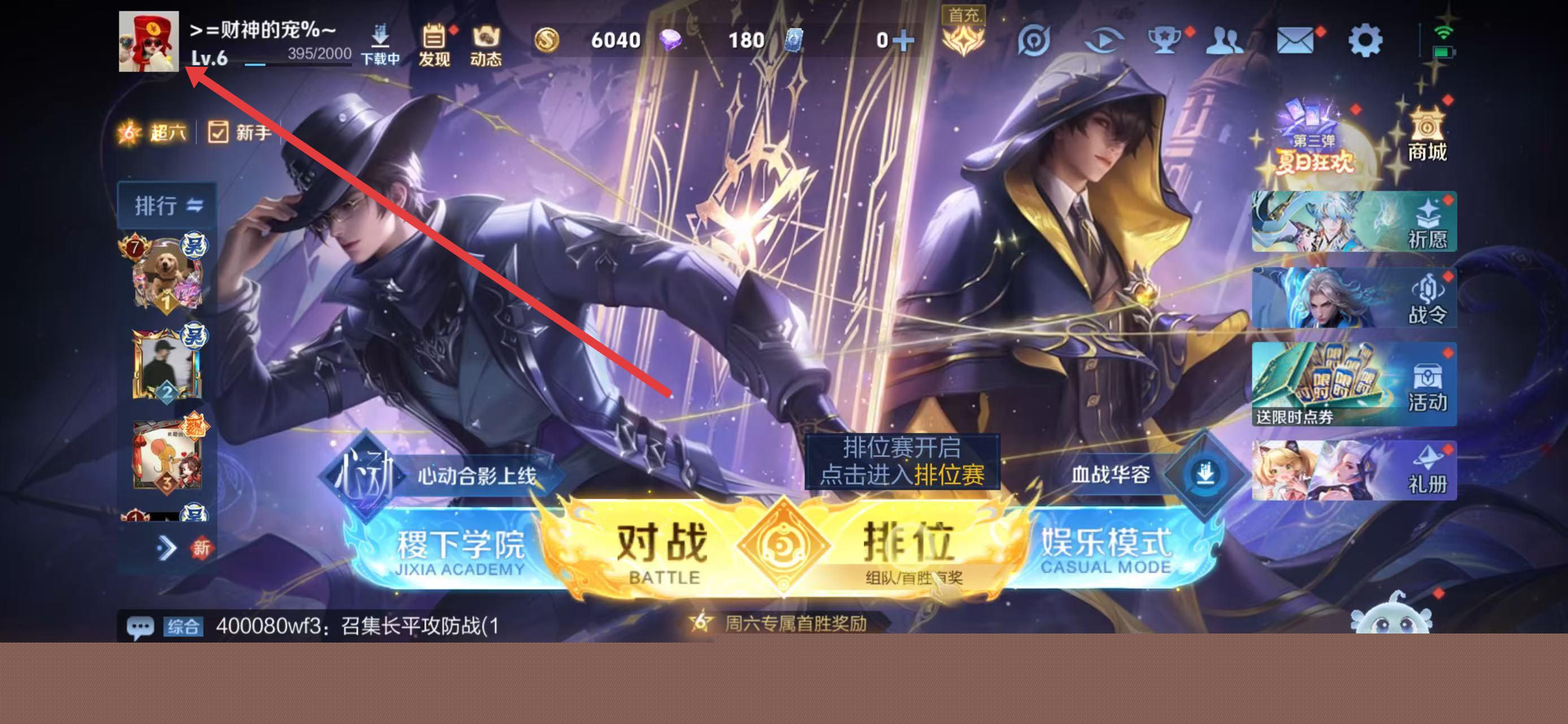 1、进入王者荣耀游戏主界面,点击左上角的头像,进入个人主页界面。