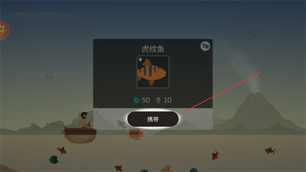 4、钓到虎纹鱼后,点击携带获取该鱼类,积累资源,推进小岛求生的进度。