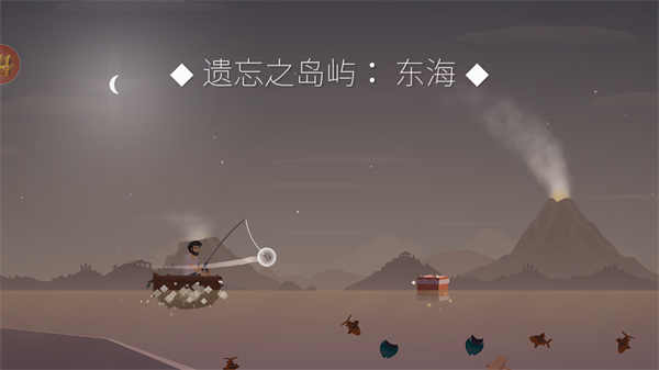 1、操控角色在船上钓鱼,点击投掷按钮抛竿,尝试钓取水中的鱼或物品,推进生存流程。