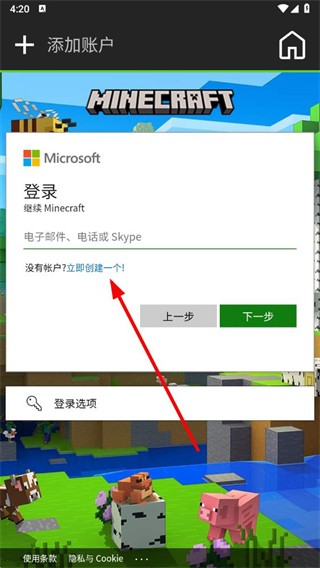 3、在弹出的Microsoft登录界面中,点击立即创建一个选项,进入账户创建页面。