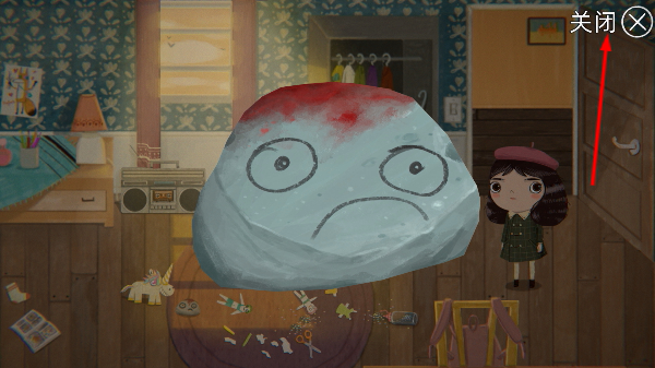 4、选定【石头】后界面显示该道具,要关闭界面时,点击右上角的【关闭×】按钮即可。