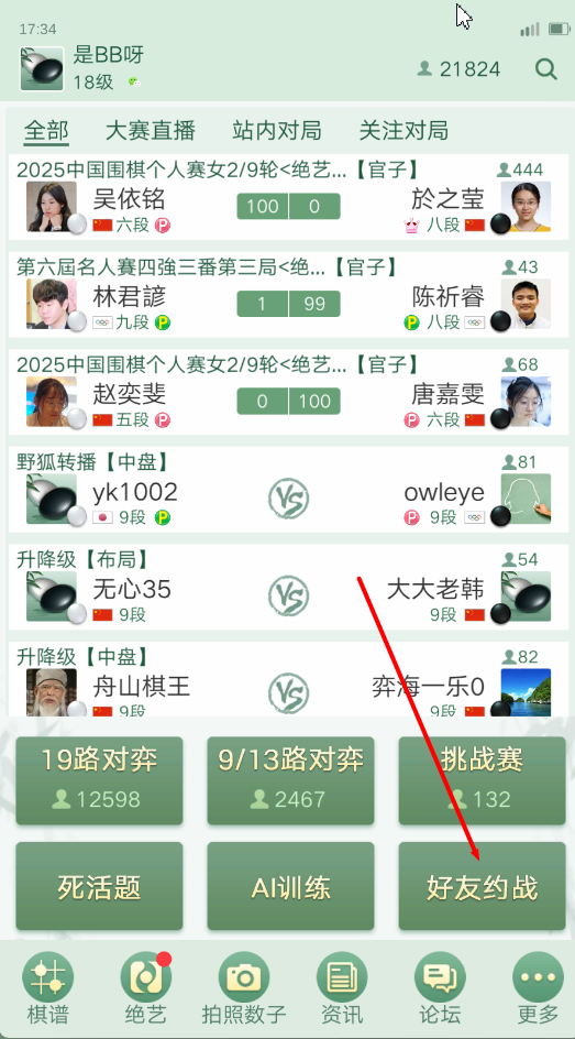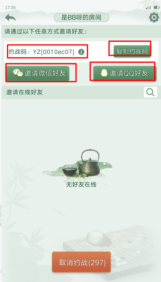 1、好友对弈功能进行了调整,新增约战码方式,帮助玩家更快发起对局,提升交流体验