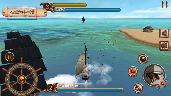 4、进入埋伏场景后,操控船只与敌方交战,达成【在埋伏中存活】的目标推进流程。